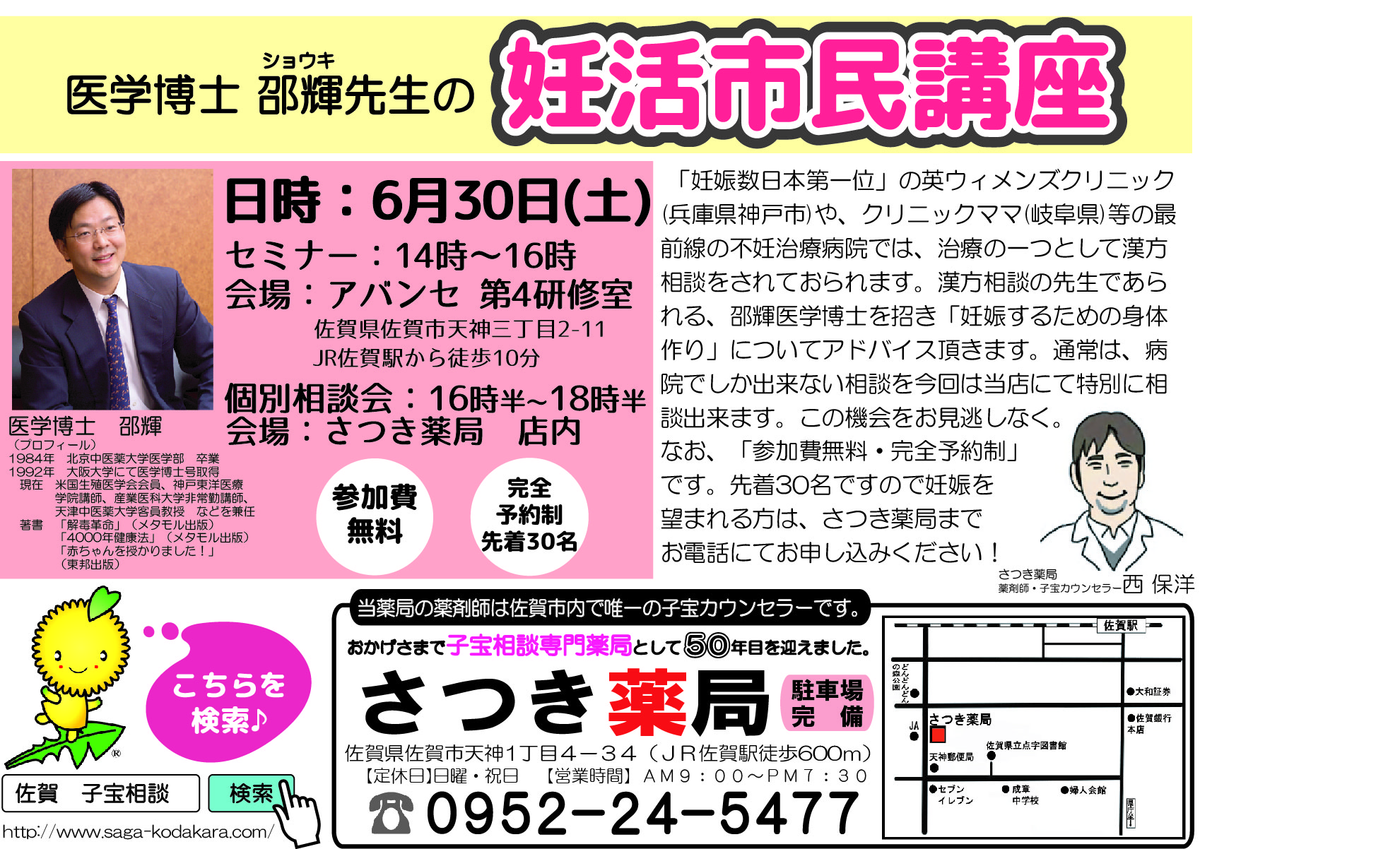参加無料!6/30子宝セミナー「妊活応援市民講座」受付中です!